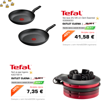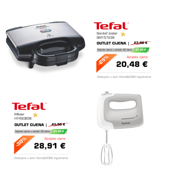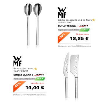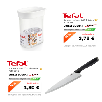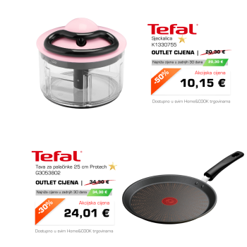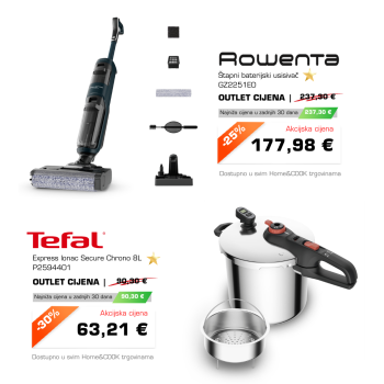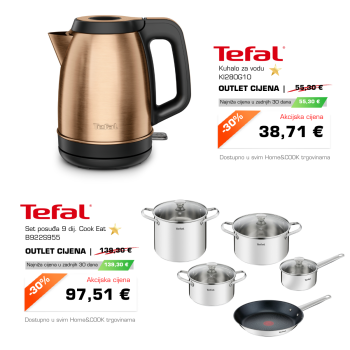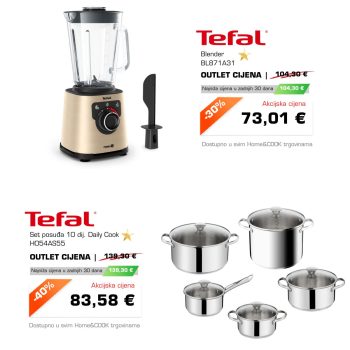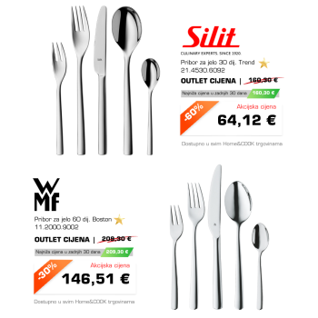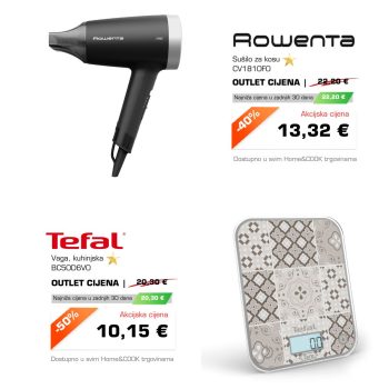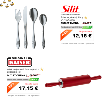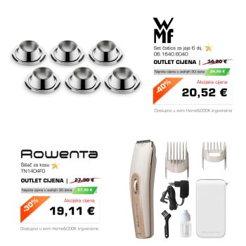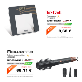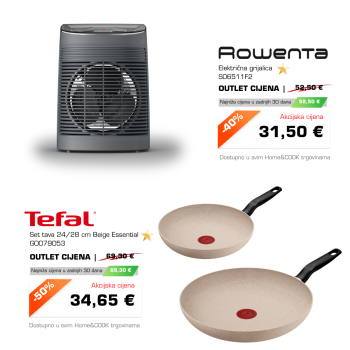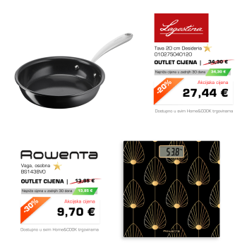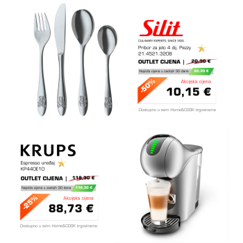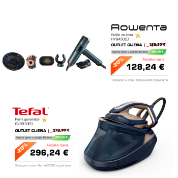 U Home & COOK Roses Designer Outlet (RDO) outlet trgovini potražite proizvode brendova EMSA, Kaiser, Krups, Lagostina, Moulinex, Rowenta, Silit, Tefal i WMF po iznimno povoljnim cijenama.