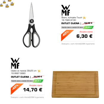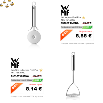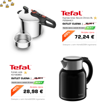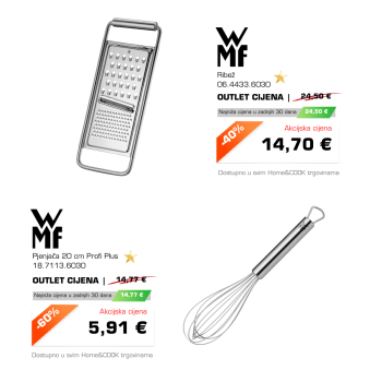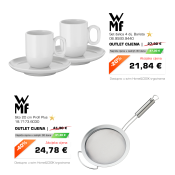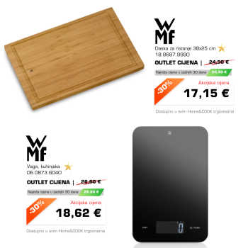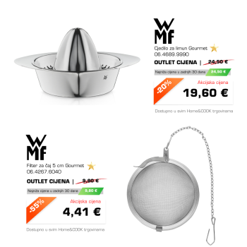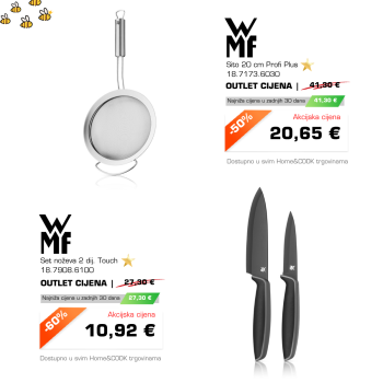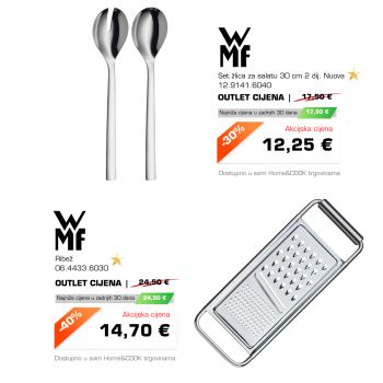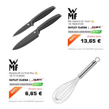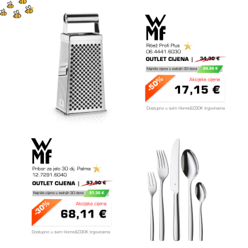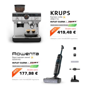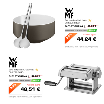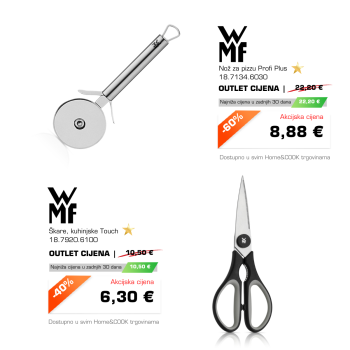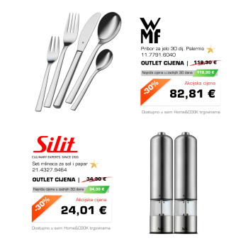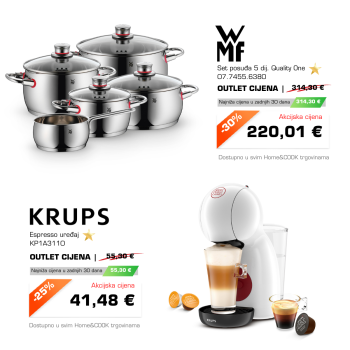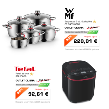 U Home & COOK Designer Outlet Croatia (DOC) outlet trgovini potražite proizvode brendova EMSA, Kaiser, Krups, Lagostina, Moulinex, Rowenta, Silit, Tefal i WMF po iznimno povoljnim cijenama.