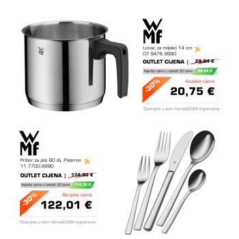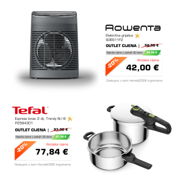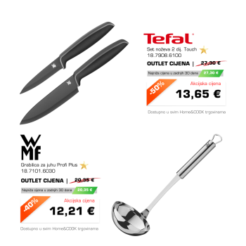 U Home & COOK Designer Outlet Croatia (DOC) outlet trgovini potražite proizvode brendova EMSA, Kaiser, Krups, Lagostina, Moulinex, Rowenta, Silit, Tefal i WMF po iznimno povoljnim cijenama.