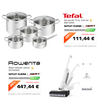 U Home & COOK Roses Designer Outlet (RDO) outlet trgovini potražite proizvode brendova EMSA, Kaiser, Krups, Lagostina, Moulinex, Rowenta, Silit, Tefal i WMF po iznimno povoljnim cijenama.